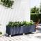 Jardinière à roulettes bleu gris 160x50x54 cm PPCette jardinière avec roues est un excellent choix pour les plantes grimpantes dans votre jardin, sur votre patio et terrasse. Matériau durable : le polypropylène est un plastique populaire qui est également l'un des matériaux les plus utilisés dans le mobilier d'extérieur. Il est léger, robuste et résistant aux chocs. Capacité généreuse : la jardinière d'extérieur offre beaucoup d'espace pour faire pousser tous vos légumes, fleurs et autres plantes. Conception pratique : la couche inférieure idéale aide à retenir l'humidité et permet un drainage facile. De plus, le treillis intégré offre un excellent soutien pour cultiver des plantes grimpantes telles que des tomates, des pois et des roses. Bel aspect de rotin : la jardinière de patio est conçue avec un aspect de rotin, apportant un charme élégant à votre espace de vie. Facile à déplacer : cette jardinière a 4 roues, ce qui facilite son déplacement. Deux des roues sont équipées de freins pour le maintenir en place si nécessaire.