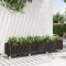 Jardinière à roulettes marron 240x50x54 cm PPCette jardinière avec roues est un excellent choix pour les plantes grimpantes dans votre jardin, sur votre patio et terrasse. Matériau durable : le polypropylène est un plastique populaire qui est également l'un des matériaux les plus utilisés dans le mobilier d'extérieur. Il est léger, robuste et résistant aux chocs. Capacité généreuse : la jardinière d'extérieur offre beaucoup d'espace pour faire pousser tous vos légumes, fleurs et autres plantes. Conception pratique : la couche inférieure idéale aide à retenir l'humidité et permet un drainage facile. De plus, le treillis intégré offre un excellent soutien pour cultiver des plantes grimpantes telles que des tomates, des pois et des roses. Bel aspect de rotin : la jardinière de patio est conçue avec un aspect de rotin, apportant un charme élégant à votre espace de vie. Facile à déplacer : cette jardinière a 4 roues, ce qui facilite son déplacement. Deux des roues sont équipées de freins pour le maintenir en place si nécessaire.