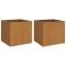 Jardinières 2 pcs 32x30x29 cm acier cortenCes jardinières seraient parfaites pour les amateurs de bricolage pour décorer les jardins, les balcons ou les patios. Matériau durable : acier corten, également connu sous le nom d'acier patinable. Cet acier est anti-corrosif par nature. Il développe une couche protectrice contre la corrosion dès sa première exposition aux conditions atmosphériques. Il n'est donc pas nécessaire de le peindre. Cela peut vous aider à économiser sur les coûts d'entretien et de réparation. La couleur marronne distinctive de l'acier corten attirera sûrement tous les regards. Enfin, l'acier résistant aux intempéries est exceptionnellement durable et résiste à l'épreuve du temps.Cadre robuste : le cadre en acier du lit surélevé assure robustesse et stabilité.Fonction décorative : le bac à fleurs peut contenir vos plantes ou fleurs préférées, ce qui est idéal pour votre jardin comme décoration. Bon à savoir :Ce produit n'est pas encore rouillé et a une couleur métallique normale lorsque vous le recevez, mais la rouille se développera au fil du temps. Vous pourriez accélérer le processus de rouille en le pulvérisant avec de l'eau savonneuse et de l'eau salée. Pour que vos vêtements ne soient pas tachés, évitez tout contact avec la couche de rouille qui se développe.Pour faciliter au maximum le montage, chaque produit est livré avec des instructions.