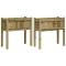 Jardinières 2 pcs avec pieds bois de pin imprégnéCes jardinières en bois seraient parfaites pour les amateurs de bricolage pour décorer les jardins, les balcons ou les patios. Bois imprégné : le bois de pin massif est un matériau naturel magnifique. Le bois de pin a un grain droit et les noeuds lui confèrent un aspect rustique caractéristique. L'imprégnation est un processus de conservation réalisé à l'aide d'autoclaves. Le traitement sous pression augmente la résistance à la pourriture et aux intempéries.Capacité généreuse : la jardinière d'extérieur offre beaucoup d'espace pour faire pousser tous vos légumes, fleurs et autres plantes.Fonction décorative : utilisez le bac à fleurs de terrasse pour créer votre propre petit jardin. Il apportera une atmosphère vivante et sera la décoration idéale pour votre espace de vie. Bon à savoir :Pour que vos meubles d'extérieur restent beaux, nous vous recommandons de les protéger avec une housse imperméable.