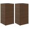 Jardinières 2 pcs marron 40x40x80 cm résine tresséeCes jardinières sont un choix idéal pour cultiver une variété de fleurs ou de plantes. Matériau durable : la résine tressée, également connue sous le nom de poly rotin, est un matériau synthétique solide et nécessitant peu d'entretien qui ressemble au rotin naturel. Elle est légère, facile à nettoyer et couramment utilisée pour les meubles d'extérieur en raison de sa durabilité et de ses propriétés de résistance aux intempéries.Cadre robuste et stable : le cadre en acier enduit de poudre est solide, stable, durable et résistant à la corrosion et aux intempéries, ce qui garantit des performances durables.Deux possibilités d'utilisation : vous pouvez utiliser le sac non tissé comme doublure et remplir la jardinière de terre ou vous pouvez simplement mettre des pots de fleurs à l'intérieur.Fonction décorative : le bac à fleurs peut contenir vos plantes ou fleurs préférées, ce qui est idéal pour votre jardin comme décoration.