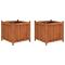 Jardinières surélevées 2 pcs 50x50x50 cm Bois de sapinCet ensemble de lit surélevé en bois attire tous les regards dans votre jardin, terrasse ou patio. Vous pouvez y placer toutes sortes de plantes et de fleurs. Les jardinières sont faites de bois de sapin massif résistant aux intempéries, suffisamment durable pour être utilisé à l'extérieur tout au long de l'année. La doublure en polyester maintient vos plantes dans le sol et retient l'humidité.