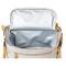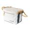 La glacière souple "Jasmin The Box 3L" est conçue dans un style bohème chic, à la fois pratique et esthétique. Une glacière pour maintenir les aliments au frais, dont l'isolation est composée de fibres polyester 100 % recyclées, fabriquées à partir de bouteilles plastique. La glacière se referme à l'aide d'une fermeture Éclair pour que les aliments soient parfaitement maintenus au frais, possède 1 anse en corde pour être portée facilement à la main. Un poche de rangement zippée à l'avant. Le dessous est de couleur noire pour éviter que la surface ne se salisse, lorsque la glacière est posée.