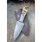 Très beau couteau de chasse fait main - Double tranchant - Poignée en os pigmenté.