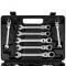 Dorénavant, les endroits difficiles d'accès ne seront plus un problème avec ces outils. Le set comprend 12 clés à cliquet robustes à têtes inclinables. Idéal pour les bricoleurs et les professionnels. En chrome vanadium acier. Les clés se rangent simplement dans un coffret en plastique stable.