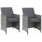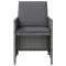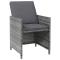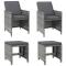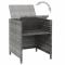 Jeu de chaise et tabouret de jardin 4 pcs Résine tressée GrisCet ensemble de 4 chaises et tabourets de jardin complète parfaitement votre jardin, terrasse et espace de vie extérieur. Avec un cadre en acier robuste enveloppé de résine tressée résistante aux intempéries, l'ensemble de chaises et tabourets d'extérieur est résistant à la rouille et à la moisissure, offrant des années de détente de qualité. La chaise de patio est conçue avec un dossier et un accoudoir pour un confort maximal. Le coussin de siège et le coussin de dossier inclus offrent un soutien supplémentaire pendant l'assise. Remarque : afin de prolonger la durée de vie de vos meubles d'extérieur, nous vous recommandons de les nettoyer régulièrement et de ne pas les laisser à l'extérieur sans protection inutilement. Nettoyage : Utiliser une solution savonneuse douce. Stockage : si possible, stockez dans un endroit frais et sec à l'intérieur. Si le produit est stocké à l'extérieur, protégez-le avec une housse imperméable. Essuyez et séchez l'excès d'eau ou de neige des surfaces planes après la pluie ou une chute de neige. Permettez une circulation d'air suffisante afin d'éviter les dommages liés à l'humidité. Maximum 110 kg par siège. Soyez conscient du risque de feux ouverts et d'autres sources de forte chaleur à proximité du produit. ,