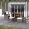 Jeu de chaise et tabouret de jardin 4 pcs Résine tressée MarronCet ensemble de 4 chaises et tabourets de jardin complète parfaitement votre jardin, terrasse et espace de vie extérieur. Les meubles de jardin sont fabriqués à partir d'un solide cadre en acier enduit de poudre, ce qui la rend robuste et stable pour des années de détente. L'ensemble de chaises et de tabourets d'extérieur recouvert de résine tressée est facile à nettoyer avec un chiffon humide et convient à une utilisation quotidienne à l'extérieur. De plus, le coussin d'assise bien rembourré ajoute un confort supplémentaire à la chaise. Remarque : afin de prolonger la durée de vie de vos meubles d'extérieur, nous vous recommandons de les nettoyer régulièrement et de ne pas les laisser à l'extérieur sans protection inutilement. Nettoyage : Utiliser une solution savonneuse douce. Stockage : si possible, stockez dans un endroit frais et sec à l'intérieur. Si le produit est stocké à l'extérieur, protégez-le avec une housse imperméable. Essuyez et séchez l'excès d'eau ou de neige des surfaces planes après la pluie ou une chute de neige. Permettez une circulation d'air suffisante afin d'éviter les dommages liés à l'humidité. Maximum 110 kg par siège. Soyez conscient du risque de feux ouverts et d'autres sources de forte chaleur à proximité du produit. ,