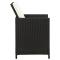 Jeu de chaise et tabouret de jardin 4 pcs Résine tressée NoirCet ensemble de 4 chaises et tabourets de jardin complète parfaitement votre jardin, terrasse et espace de vie extérieur. Avec un cadre en acier robuste enveloppé de résine tressée résistante aux intempéries, l'ensemble de chaises et tabourets d'extérieur est résistant à la rouille et à la moisissure, offrant des années de détente de qualité. La chaise de patio est conçue avec un dossier et un accoudoir pour un confort maximal. Le coussin de siège et le coussin de dossier inclus offrent un soutien supplémentaire pendant l'assise. Remarque : afin de prolonger la durée de vie de vos meubles d'extérieur, nous vous recommandons de les nettoyer régulièrement et de ne pas les laisser à l'extérieur sans protection inutilement. Nettoyage : Utiliser une solution savonneuse douce. Stockage : si possible, stockez dans un endroit frais et sec à l'intérieur. Si le produit est stocké à l'extérieur, protégez-le avec une housse imperméable. Essuyez et séchez l'excès d'eau ou de neige des surfaces planes après la pluie ou une chute de neige. Permettez une circulation d'air suffisante afin d'éviter les dommages liés à l'humidité. Maximum 110 kg par siège. Soyez conscient du risque de feux ouverts et d'autres sources de forte chaleur à proximité du produit. ,