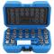 Jeu de douilles de verrouillage de jante 23 pcs pour VAGCet ensemble de douilles de verrouillage de jante de 23 pièces contient 22 douilles de démontage de différentes tailles et 1 douille de protection à impact. Il est conçu pour le démontage ou l'installation des serrures de jante sur la plupart des véhicules VAG. Fabriqués en acier chrome-molybdène, ces outils sont extrêmement robustes et durables. Toutes les pièces sont livrées dans un étui pratique moulé par soufflage pour faciliter le stockage et le transport.