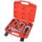 Jeu d'outils de réparation de l'extrémité avant 5 pcs Cet ensemble d'outils permet de retirer facilement les types les plus populaires de bras, de tirants et de joints à rotule. Le séparateur de joints à rotule est une presse qui permet le démontage des joints à rotule sans endommager les sabots et autres pièces, contrairement aux séparateurs conventionnels à fourche. Le kit est livré dans une mallette de rangement durable.
