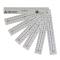 Une réglette recto-verso par type d'arme ou d'optique (Famas, 0,1 millième, 0,25 millième, 1 Moa, 1/2 Moa et 1/4 Moa) à 4 distances (10, 25, 50 et 100 m) possédant les gradations correspondantes à la valeur du clic