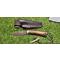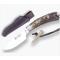 Lame en acier inoxydable 420Mov de 110 mm. de long (bord 90 mm.). Épaisseur de tôle : 3,2 mm. Longueur totale : 228 mm. Manche : bois de cerf. Poids : 140 grammes. Couverture en cuir.