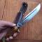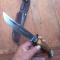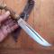 Joli Couteau de Chasse SABATIER avec Étui en cuir Manche en Bois de Cerf