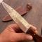 Joli Couteau Damas Dague Double tranchants Manche en Bois avec Étui en cuir