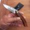 Joli Couteau Piémontais Artisanal Damas Manche en Bois avec Étui en cuir noir