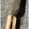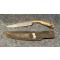 Joli couteau de trappeur type patch knife pour couper le tissu qui sert à calepiner la balle de plomb du fusil à poudre noire ,étui sommaire en cuir , manche en bois de cerf de virginie rivets cuivre , ramené des États Unis fabriqué par reconstitueur Américain comme dans les livres buckskinning.