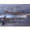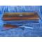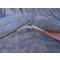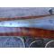 Fusil de chasse à broche calibre 16, canons en table Damas tabac intérieurs miroirs de 750 mm, ouverture par clef Lefaucheux, chiens sur platines en arrière signées « Pondevaux à St-Etienne », détente double sous pontet voluté, crosse à l'anglaise à couche ferTBE, jolie fabrication stéphanoise XIXe dans une mallette en bois gainée à la francaise de tissus vert, 810 x 205 x 80 mm,