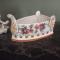 Joli grand fer à repasser en porcelaine à décor fleuri de roses
