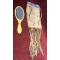 Jolie pochette a miroir,indien des plaines perlée , déjà ancienne,belle patine,pochette 20,5 cm par 15,5cm accompagné de son miroir bisauté ancien 23,5cm
