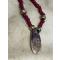 Très joli collier indien des plaines en perle. Perle de métal et perle en verre rouge intérieur blanc perle de troc échangées aux indien. avec une réplique de dent de wapiti faite en os par un indianiste.