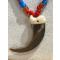 Très joli collier indien des plaines en perle. Perle en verre perle de troc échangées aux indiens. avec une réplique d'une griffe d'ours faite en os et en corne par un indianiste.