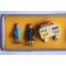 Boite La vie du Rail, série J par M.DM. 3 personnages, 1 chariot et un banc en plomb hauteur personnage : 4,2 cm très bon état, sauf un angle de la boite déchiré, voir photos