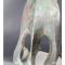 Rare type. This fenestred bronze Axe head is shaped in a crescent crescentic form with integral sockets. There is a reinforcing ridge at the center of the blade between the two openings, thereby making this blade a relation to the so called "duck bill'" Axe heads. A very unique and rare example
