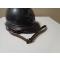 REPRO. d'une jugulaire en cuir patiné , épaisseur 1 mm , Longueur 600mm , largeur 14mm , boucle fer et rivets laiton vieilli pour casque Adrian Mle. 1915