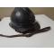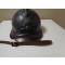 REPRO. d'une jugulaire en cuir patiné , épaisseur 1 mm , Longueur 600mm , largeur 14mm , boucle fer et rivets laiton vieilli pour casque Adrian Mle. 1915