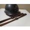 Repro. de 2 jugulaires en cuir patiné , épaisseur 1mm , largeur 14mm , Longueur 600mm , boucle fer et rivets laiton vieilli pour casque Adrian Mle.1915
