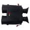 Les jumelles multi-spectrales Gemini GEH50R d'InfiRay sont dotées d'un boîtier en polymère robuste et ergonomique avec une texture de surface antidérapante et sont protégées contre les intrusions d'eau et de poussière conformément à la norme IP66. Les fenêtres d'entrée et de sortie du télémètre laser sont visibles entre l'objectif jour/nuit (à gauche) et l'objectif d'imagerie thermique.