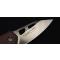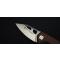 Le manche est en micarta coloris caramel, un matériau composite composé de fibres compressées avec de la résine. Il présente une surface légèrement texturée qui améliore la tenue en main, même en conditions humides ou avec des gants.