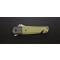 Le manche est en micarta finition army, un matériau composite constitué de fibres compressées et de résine. Sa surface légèrement texturée améliore la prise en main et permet une utilisation plus stable, même en conditions humides.