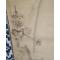 KAKEMONO À L'ENCRE SUR PAPIER représentant un voyageur à cheval traversant un pont dans la montagne près d'une cascade, vers un temple dans les hauteurs.