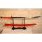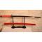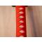 REPRODUCTION - Sabre japonais rouge avec caractères sur lame visibles au travers du fourreau EBR24JAP015