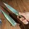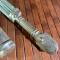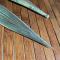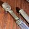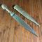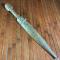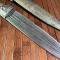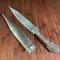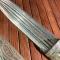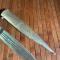 Poignard caucasien. Belle Lame à double tranchant et triple gorge de 21,5 cm, avec poinçon, poignée montée argent étranger gravée de à deux rivet rond . Fourreau bois recouvert d'une feuille d'argent décoré sur une face.
