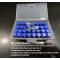 KIT 32 TUBES POUR POUDRE NOIRE OU SEMOULE DANS UNE BOITE 160X90MM H6MM AVEC MOUSSE ANTI-CHOC ALVEOLEE + CUILLERE + ENTONNOIR