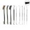 1: 3 brosses et 6 outils: chaque kit de nettoyage comprend 3 brosses et 6 outils. Les trois types de brosses à double extrémité sont le laiton, l'acier et le nylon. Cinq outils de nettoyage sont faits d'acier inoxydable et un est fait de nylon.