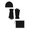 Ce set complet en noir vous garde au chaud en toute élégance. Il comprend un bonnet à double surpiqûre, un tour de cou ajustable avec cordon de serrage et une paire de gants avec poignets resserrés pour une protection renforcée contre le froid.