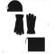 Ce set complet en noir vous garde au chaud en toute élégance. Il comprend un bonnet à double surpiqûre, un tour de cou ajustable avec cordon de serrage et une paire de gants avec poignets resserrés pour une protection renforcée contre le froid.