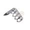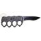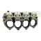 Poing américain en alliage noir, orné de 4 têtes de mort argenté, dissimulant une lame de couteau, également noire!