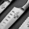 La lame Shoso est fabriquée en acier inoxydable 5CR15MoV d'une dureté de 56 (±1) HRC, ce qui garantit une tenue de coupe de longue durée. Le couteau à pain à lame dentelée se caractérise, comme les autres couteaux de la série, par un tranchant stable - idéal pour une coupe nette et précise. La finition mate souligne l'élégance froide du couteau.