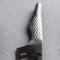 Le manche mat en inox 18-8 est particulièrement robuste et, grâce à sa forme ellipsoïdale symétrique permet une prise en main professionnelle. Le motif à losanges intégré permet un parfait maintien lors de la coupe. La transition invisible entre le manche et la lame souligne la ligne épurée du couteau.