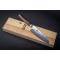 Grâce à sa forme symétrique, il convient à la fois aux gauchers et aux droitiers. Une soie sur toute la longueur assure stabilité et équilibre lors de la coupe. Détail particulier, l'extrémité du manche est gravée d'une tête de taureau Tim Mälzer, le signe distinctif du chef professionnel.