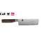 Le coeur de la lame Shun Premier est en acier VG Max extrêmement dur et est recouvert de 32 couches d'acier damassé. Cette combinaison de différents types d'acier rend la lame à la fois dure et tendre. La lame aiguisée des deux côtés est agréable à utiliser de par son faible poids et garantit une coupe nette et précise. La surface est martelée à la main non seulement pour des raisons esthétiques, mais également pour assurer, grâce aux petites bulles qui se forment que l'aliment n'adhère pas à la lame.