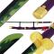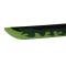 La lame, en acier 420 de haute qualité de 101 cm, se distingue par sa finition noire avec des détails jaunes et verts subtilement incorporés sur la coupe.