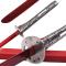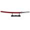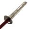 La lame, une splendeur émoussée en acier inoxydable, revêt une parure ardente de couleur rouge, un hommage vibrant à l'éclat de la bataille.