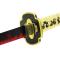 Ce katana comprend un Tsuba plein de couleur doré et noir tout comme son Tsuka en bois.