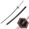 La réplique est soigneusement escortée par un fourreau en bois noir et doré, une pièce à part entière qui reflète la grandeur du katana.