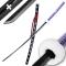 Le Tsuka, quant à lui, confère une nouvelle perspective, drapée d'un cordage synthétique violet qui enveloppe un similicuir évoquant la peau de raie, teinte d'un noir profond.